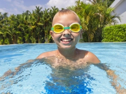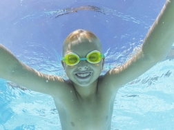 Polycarbonatgläser mit UV-Filter schützen Kinderaugen vor der Sonne und sorgen für klare Sicht unter Wasser.