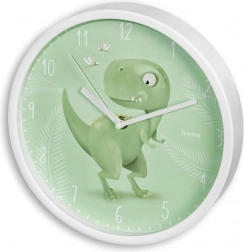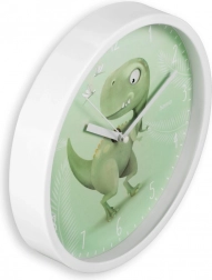 Diese Kinder-Wanduhr bringt Freude und Farbe in jedes Zimmer. Dank des grünen Zifferblatts mit Dinosauriermotiv zieht sie die Aufmerksamkeit der Kinder auf sich und fördert ihr Interesse am Erlernen der Zeit.