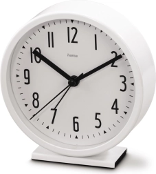 Der stilvolle Tischwecker Hama Skye sorgt dank leisem, gleichmäßigem Lauf für präzises Wecken und einen ruhigen Schlaf. Er verfügt über ein analoges Zifferblatt mit großen schwarzen Zahlen für leichtes Ablesen der Uhrzeit, einfache Einstellung eines Alarms und ein elegantes weißes Design, das in jedes Schlafzimmer passt.