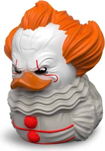 Detailgetreue Verarbeitung des ikonischen Looks von Pennywise mit orangefarbener Mähne und bedrohlichem Lächeln, die der Ente ein authentisches Aussehen verleiht.