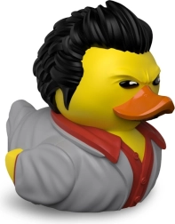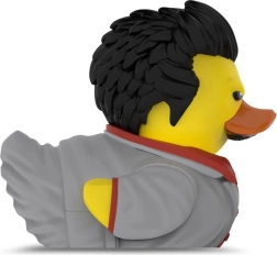 Die detailreiche Ausarbeitung von Frisur, Anzug und markantem Gesichtsausdruck begeistert jeden Fan. Das robuste Kunststoffmaterial ist pflegeleicht und die Ente eignet sich sogar als Deko fürs Badezimmer.