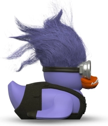 Violette Haare, silberne Brille und schwarzer Overall – eine originalgetreue Darstellung der Figur aus Minions in einer witzigen Enten-Stilisierung.