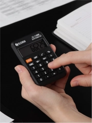 Leichter und kompakter Taschenrechner ELEVEN in elegantem Schwarz bietet ein 8-stelliges Display, Grundrechenarten, Prozent- und Speicherfunktionen sowie energiesparendes AUTO POWER OFF – ideal für Schule, Reisen und Büro.