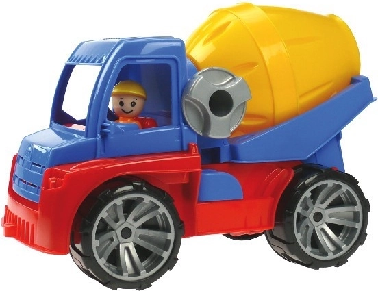 Bunter LENA TRUXX Betonmischer aus robustem Kunststoff für Kinder ab 3 Jahren. Er ist vollständig mechanisch funktionsfähig, verfügt über eine aufklappbare Kabine mit Aktiv-Figur und eine Sicherung gegen unbeabsichtigtes Kippen. Entspricht den EU-Sicherheitsnormen und hält auch wilderem Spiel zuhause und im Garten stand.