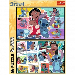 Wir bringen Ihnen doppelten Spaß mit diesem Puzzle-Set mit zwei Puzzles zu je 200 Teilen. Das Thema sind farbenfrohe Collagen aus dem beliebten Zeichentrickfilm Lilo und Stitch, die Unterhaltung für die ganze Familie bieten.