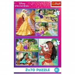 Puzzle 2x70 Disney Prinzessinnen Märchentage ist die perfekte Wahl für alle Kinder, die Disney-Prinzessinnen lieben. Es enthält zwei Puzzles, die zusammen doppelten Spaß bieten.
