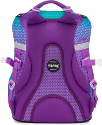 Der Schulrucksack Oxy Ombre Blue Pink überzeugt mit modernem Ombré-Design in Türkis und Violett mit hexagonalem Muster. Dank der anatomisch geformten Rückenpartie sowie der gepolsterten, verstellbaren Träger bietet er ganztägigen Komfort auch bei voller Beladung. Der feste Boden sorgt für einen stabilen Stand und schützt den Inhalt.