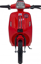 Retro-Stil und leuchtend rote Farbe machen diesen Roller zum modischen Accessoire für jeden jungen Fahrer.