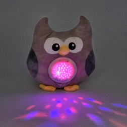 Die Plüscheule vereint Nachtlicht, Projektor und Soundmodul in einem. Der weiche Körper aus angenehm anzufassendem Material ist mit Watte gefüllt und daher ideal zum Kuscheln. Am Bauch projiziert sie zarte Sternchen und einen Mond mit wechselnden Farben und spielt gleichzeitig Schlaflieder oder weißes Rauschen einschließlich Herzschlag zur natürlichen Beruhigung.