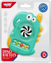 Farbiges Beißspielzeug in Form eines Dinosauriers der Marke Woopie ist das ideale Spielzeug für die Kleinsten, speziell für Säuglinge entwickelt. Die Form ist perfekt für kleine Kinderhände. Dank weicher Silikonelemente eignet es sich als Beißring, und die bunten Perlen sowie der Spiegel fesseln jedes Kind.