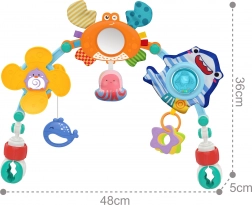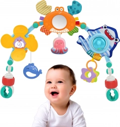 Der Spielbogen lässt sich einfach an einem Kinderwagen, Autositz oder Bett befestigen, um maximale Flexibilität zu gewährleisten.