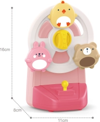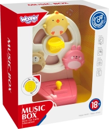 Küken, Häschen und Bärchen drehen sich nach dem Start und begleiten das Kind mit einer angenehmen Melodie der Spieluhr. Spielspaß, der Sehen und Hören stimuliert.