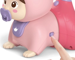 Das Brabbelnde Baby der Marke WOOPIE ist ein fröhliches Spielzeug, ideal für Kinder ab 18 Monaten. Dieses Spielzeug regt Kinder dazu an, seine Bewegungen nachzuahmen und fördert so ihre motorischen Fähigkeiten. Für noch mehr Spaß ist es mit einer Melodie zur auditiven Stimulation und Lichteffekten ausgestattet, die den Sehsinn unterstützen. Das Produkt ist sicher, hat keine scharfen Kanten und besteht aus robustem Material. Es eignet sich hervorragend als Freund für Ihr Kind.