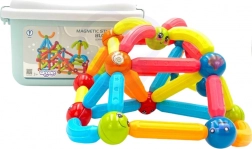 Dieses farbenfrohe magnetische WOOPIE-Bauset ist ideal für Kinder ab 3 Jahren. Die Teile sind ausreichend groß, robust und abgerundet, damit sie gut in kleinen Händen liegen. Metallkugeln und Magnetstäbchen in verschiedenen Längen und Formen erlauben das Erstellen fantasievoller Modelle – von einfachen Formen bis hin zu komplexeren 3D-Konstruktionen.