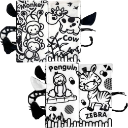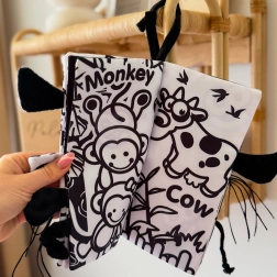 Schwarz-weiße Tiermotive sind ideal für Neugeborene und helfen, die Sehschärfe und Konzentration zu fördern.