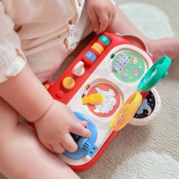 Dank robuster Ausführung und kräftiger Farben eignet sich das Spielzeug ideal für die sensorische Wahrnehmung sowie die Förderung der Feinmotorik, der Hand‑Augen‑Koordination und kognitiver Fähigkeiten. Kinder können drücken, drehen, schieben und öffnen und trainieren dabei Geduld, Konzentration und Problemlösen.