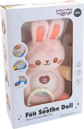 Der interaktive Hase in Rosa hilft dem Baby, sich zu beruhigen und leichter einzuschlafen. Die weiche Oberfläche und die sanfte Füllung sorgen für angenehmes Kuscheln, während Melodien und gedämpftes Licht eine behagliche Atmosphäre für die Ruhezeit schaffen.