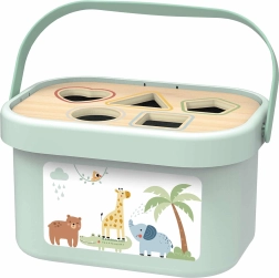 Der Deckel mit Formausschnitten lehrt Kinder, zu sortieren und zu unterscheiden – Formen und Farben. Nach dem Spielen lassen sich die Teile im Inneren verstauen und die Box kann dank des praktischen Griffs bequem getragen werden.