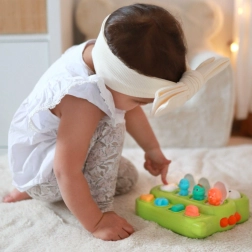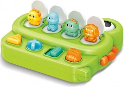 Drücken, umschalten oder drehen – und bunte Dinosaurier springen heraus! Kinder trainieren die Koordination und verstehen das Prinzip von Ursache–Wirkung.