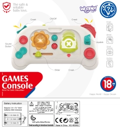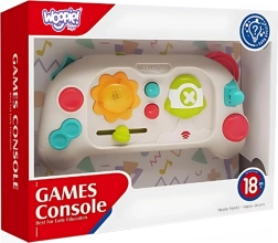 Der interaktive WOOPIE-Controller ist für neugierige Kinderhände ab 18 Monaten konzipiert. Bunte Tasten drehen sich, klicken und spielen Melodien, die leuchtende „Sonne“ zieht die Aufmerksamkeit auf sich und die bewegliche Rakete lädt zu kreativem Spiel ein. Durch die Kombination aus Licht, Klang und Berührungsreizen entwickeln Kinder sensorische Wahrnehmung und Feinmotorik.