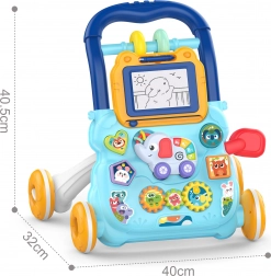 Entdecken Sie Spaß und Lernen in einem mit dem interaktiven Lauflernwagen von Woopie. Dieser Wagen ist mit einer Zeichentafel ausgestattet, die die Kreativität Ihres Kindes fördert und ihm ermöglicht, eigene Bilder und Muster zu gestalten. Zudem spielt der interaktive Elefant fröhliche Melodien, wenn die Knöpfe gedrückt werden, was für zusätzlichen Spaß sorgt.