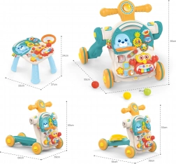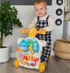 Dieses Spielzeug ist ein wahrer Quell der Überraschungen, die das Kind selbständig entdecken kann. Die Kombination mehrerer Funktionen in einem Spielzeug: Lauflernhilfe, Roller, Rutscher und Lerntisch sorgt dafür, dass das Spielzeug nicht langweilig wird.