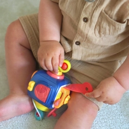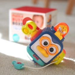 Der Würfel bietet verschiedene Texturen, Muster und farbenfrohe Elemente, die sensorische Eindrücke bieten und helfen, Seh-, Hör- und motorische Fähigkeiten des Kindes zu entwickeln. Interaktive Elemente wie der herausspringende Hund oder Glöckchen bieten akustische Stimulation. Das Spielzeug unterstützt die Entwicklung des Kindes auf unterhaltsame und umfassende Weise, was es zu einer hervorragenden Wahl macht.