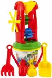 Buntes Sandspiel-Set für Kinder ab 1 Jahr – alles für kreatives Spielen am Strand und im Garten. Enthält eine Sandmühle, einen Eimer, eine Schaufel, einen Rechen und Förmchen. Aus hochwertigem Kunststoff gefertigt, fördert Feinmotorik, Fantasie und Kreativität. Entspricht der CE-Zertifizierung für sicheres Verwenden.