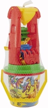 Eimer, Schaufel, Rechen und Förmchen ermöglichen den Bau von Burgen, Tunneln und Sandkuchen. Alles ist leicht, kompakt und einfach zu tragen.