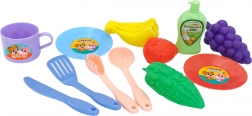 • 14-teiliges Zubehör: Teller, Becher, Besteck, Obst und Gemüse, Flasche für Spülmittel.