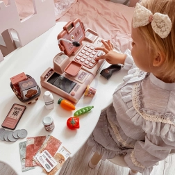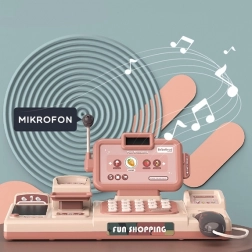 Die Kasse spricht Englisch, spielt Lieder und klassische Melodien. Das funktionale Mikrofon verleiht dem Spiel des kleinen Verkäufers zusätzlichen Drive.