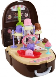 Der kleine Konditor ist immer startklar! Dieses niedliche Set in Form eines Rucksacks verwandelt sich nach dem Öffnen in eine komplette Eisdiele und einen Mini-Laden. Kinder können Kugel-Eis servieren, Waffeln befüllen und süße Leckereien an Freunde und Eltern verkaufen. Dank der leichten Konstruktion nehmen sie es mühelos mit auf den Spielplatz, zu den Großeltern oder in den Urlaub.