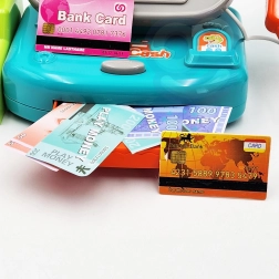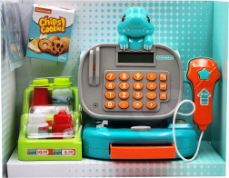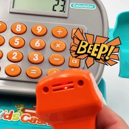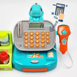 Eröffnen Sie Ihren eigenen kleinen Laden mit der WOOPIE DINO Kinderkasse in Blau. Kinder können die Waren mit dem Scanner und realistischen Geräuschen „scannen“, den Preis auf dem echten Taschenrechner eingeben und mit Münzen, Banknoten oder Karte bezahlen. Außerdem ist ein praktisches Regal für Waren enthalten, das dem Spiel Authentizität verleiht.