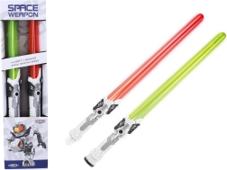 Erleben Sie actionreiche Duelle mit dem doppelseitigen Lichtschwert mit einer Länge von 138 cm. Das Set enthält 2 einzelne Schwerter und eine Kupplung mit Griff zum bequemen Verbinden zu einem beidseitigen Schwert. Mit Licht- und Soundeffekten, aktiviert per Knopf am Griff. Ideal für Kinderspiele und Themenkostüme.
