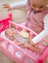 Die Puppe imitiert spielend leicht ein echtes Baby: Arme und Beine sind beweglich und der Schnuller lässt sich bequem in den Mund stecken – beruhigend und perfekt fürs Einschlafspiel.