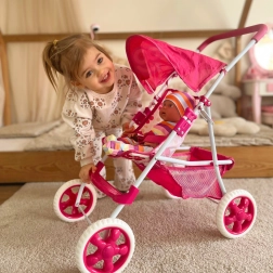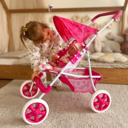 Der stilvolle Puppenwagen WOOPIE Royal begeistert mit einer leichten und stabilen Konstruktion, klappbarem Verdeck, weichem Schaumstoffgriff und leisen Schaumstoffrädern. Er bietet Gurte für sicheres „Spazierenfahren“, eine Fußstütze und einen praktischen Korb für Kleinigkeiten. Lässt sich leicht zusammenklappen und ist ideal zum Spielen zu Hause und für Spaziergänge.
