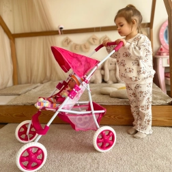 Durchdachte Details wie Sicherheitsgurte, Fußstütze und ein geräumiger Korb für Zubehör machen diesen Wagen zu einem praktischen Begleiter für den Alltag. Nach dem Spielen einfach zusammenklappen und verstauen. Der abnehmbare Stoffbezug kann zur einfachen Pflege abgenommen werden.