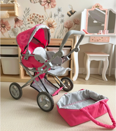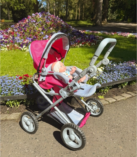 Der stilvolle rosafarbene Puppenwagen WOOPIE ROYAL erfreut jede kleine Fürsorgerin. Er bietet 3-in-1-Nutzung – Kinderwagenwanne, Sportsitz und herausnehmbare Trage/Tasche. Er hat einen verstellbare... Mehr anzeigen