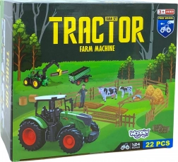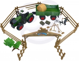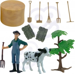 Das Set enthält einen Traktor, Tier- und Bauernfiguren sowie weiteres landwirtschaftliches Zubehör, das eine realistische Bauernhofatmosphäre schafft.