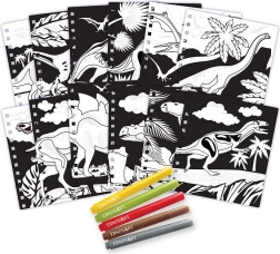 12 Samt-Maltafeln, 5 Mini-Filzstifte, Anleitungen, informative Seiten über Dinosaurier