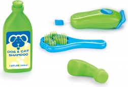Bürste, Shampoo, Spender und Trimmer unterstützen kreatives Rollenspiel und vermitteln Grundlagen der Hygiene und Haustierpflege.