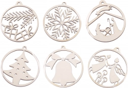 Eleganter Holzanhänger mit einem Durchmesser von 63 mm, der Ihrem Zuhause einen natürlichen Charme und ein authentisches Erscheinungsbild verleiht. Er ist leicht, lässt sich problemlos mit weiteren Dekorationen kombinieren und ist ideal für Weihnachtsbäume, Kränze und kreative Projekte. Erhältlich in verschiedenen Designs und bereit für weitere individuelle Gestaltungen durch Bemalen oder Dekorieren.