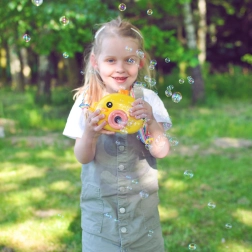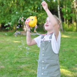 Die Seifenblasen-Lok Küken WOOPIE ist das ideale Spielzeug für Kinder ab 3 Jahren. Eine einfache Bedienung über den On/Off-Knopf, reichlich Seifenblasen und die leichte Konstruktion machen sie zum perfekten Begleiter für Garten, Spielplatz und Kindergeburtstage.