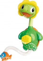 Entdecken Sie ein verspieltes Badespielzeug, das das tägliche Baden in eine fröhliche Show verwandelt. Nach dem Drücken des Bauchs wird das Wasser in den Kopf geleitet und spritzt heraus wie eine Dusche aus dem Gesicht der Schildkröte. Dank des flexiblen Schlauchs mit Fisch können Kinder den Wasserstrahl leicht steuern und dorthin lenken, wo sie möchten.