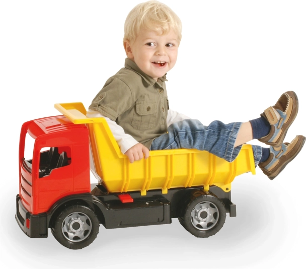 Entdecken Sie den Spielspaß mit diesem großen Kinderkipper mit einer Länge von 61 cm – ideal für Spiele mit Kindern. Dieser äußerst robuste und farbenfrohe Kipper ist mit einer Muldenarretierung ausgestattet, die es Kindern ermöglicht, sicher darauf zu sitzen.