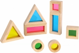 Dank der transparenten bunten Einsätze verändern die Blöcke bei Aneinanderlegen ihre Farbe, was Kindern hilft, Farben zu erkennen und zu kombinieren. Das Stapeln und Bauen mit diesen Blöcken fördert Fähigkeiten wie Kreativität und Vorstellungskraft.