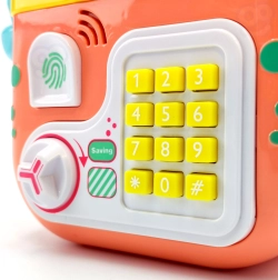 Bewahren Sie Münzen und Banknoten über separate Schlitze auf, legen Sie ein Passwort fest und öffnen Sie mit dem Drehrad. Ideal für die ersten Schritte zur finanziellen Bildung.