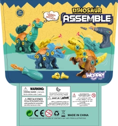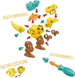 Entdecken Sie die kreative Welt des Konstruierens mit WOOPIE Dinosauriern zum Zusammenbauen. Im Set finden Sie 3 bunte Dinosaurier, die Kinder mit Hilfe einer Bohrmaschine und eines Schraubendrehers mit austauschbaren Bits selbst zusammenbauen. Nach dem Zusammenbau besitzen die Dinosaurier beweglichen Kopf, Schwanz und Gliedmaßen für noch abwechslungsreicheres Spiel. Ein großartiges Spielzeug zur Förderung der Feinmotorik, Geduld und Kreativität, verpackt in einem praktischen tragbaren Koffer.