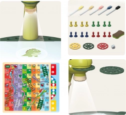 Der Tisch ist leicht, kompakt und tragbar – ideal fürs Kinderzimmer und für unterwegs. Der Projektor lässt sich einfach bedienen und wird mit 3× AA 1,5 V-Batterien betrieben (nicht enthalten). Zusätzlich zum Zeichnen begeistern 2 Brettspiele im Set: Mensch ärgere dich nicht! und Schlangen und Leitern inklusive Würfel und Figuren.