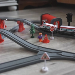 Das Woopie-Eisenbahnset ermöglicht es Kindern, eigene Eisenbahnszenarien zu erschaffen, ihre Kreativität auszuleben und die Vorstellungskraft zu entwickeln.
